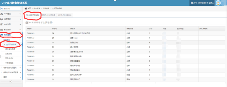(2)班级课表:请提供2019—2020学年秋学期课表(16、17级矿加、采矿专业需提交选煤、选矿课表各一张,其他各专业只需提交一张课表);16、17级矿加、采矿专业需提交专业分方向名单,以上所有材料需提交电子版(要求写专业年级),纸质版开学后和其他材料一并上交;课表请登录个人教务,具体操作如下图显示: