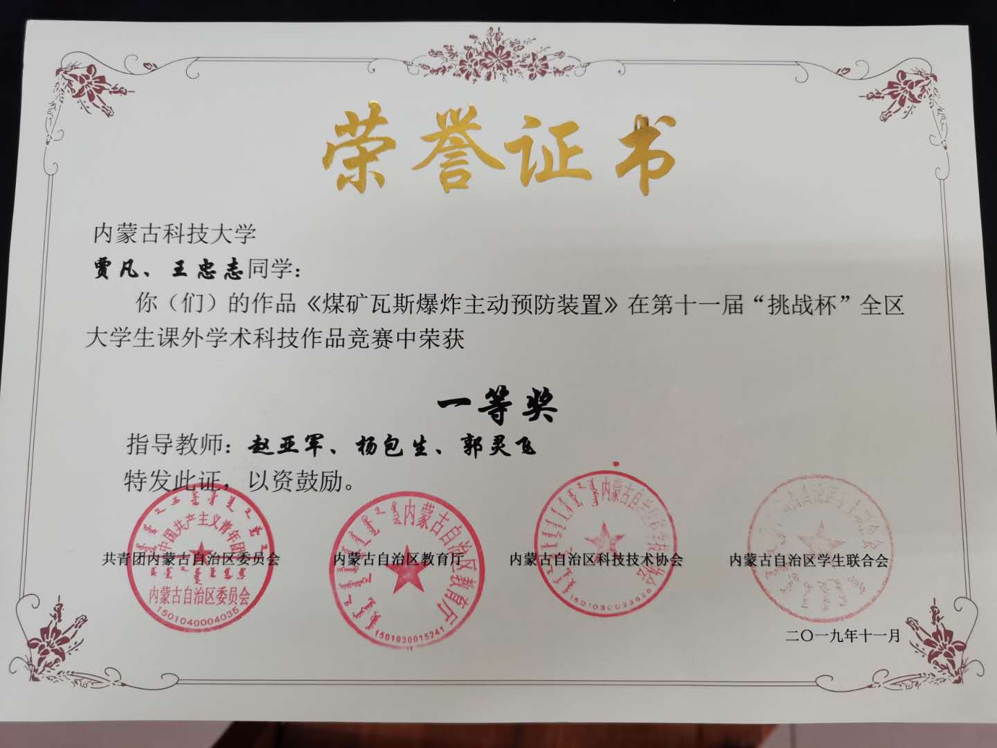 祝贺公司教师指导的作品荣获第十一届“挑战杯”全区老员工课外学术科技作品竞赛一等奖
