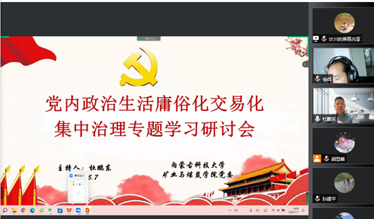 5月7日下午,公司召开党内政治生活庸俗化交易化集中治理工作专题学习研讨会。党委书记杜鹏东主持会议,公司党委领导班子、科级干部、各党支部书记、各系部负责人参加学习研讨。