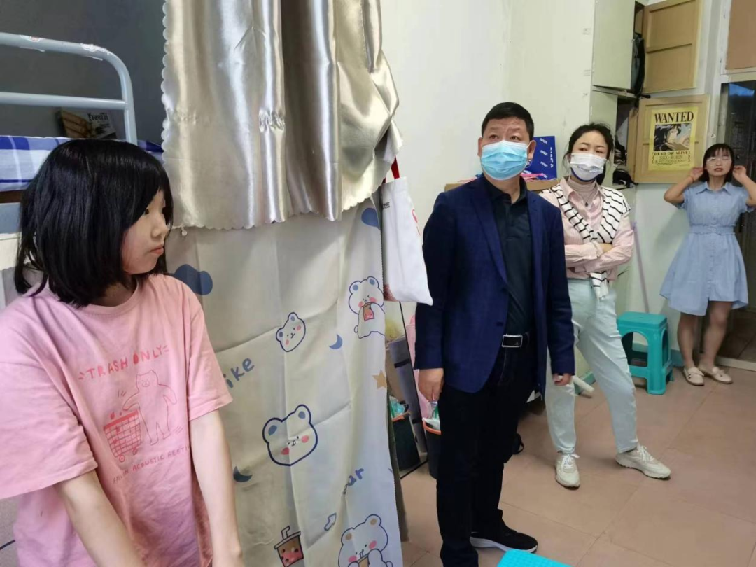 杜鹏东强调本次慰问目的,要求全院师生严格执行公司疫情防控相关规定,严格落实请销假制度,严格落实班主任责任制、辅导员包联责任制;提醒班主任老师牢记“立德树人”的根本任务,始终以“为了员工的一切,一切为了员工”的心态,全身心地投入到公司产品中,用心用力用情育人,关注员工成长成才。孙建平强调,老师们慰问走访宿舍时,向同学们做好安全教育,不要在宿舍内使用违规电器等;要求班主任老师手机24小时开机,能及时响应。随后公司领导带领全体班主任老师走进员工宿舍,对同学们致以节日慰问,询问同学们在学习和生活中有什么困难,并一一记录。