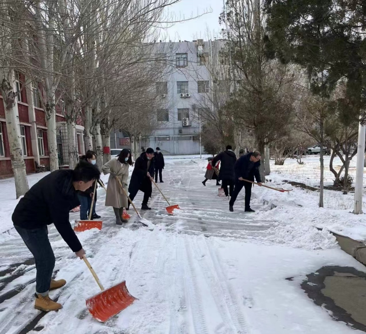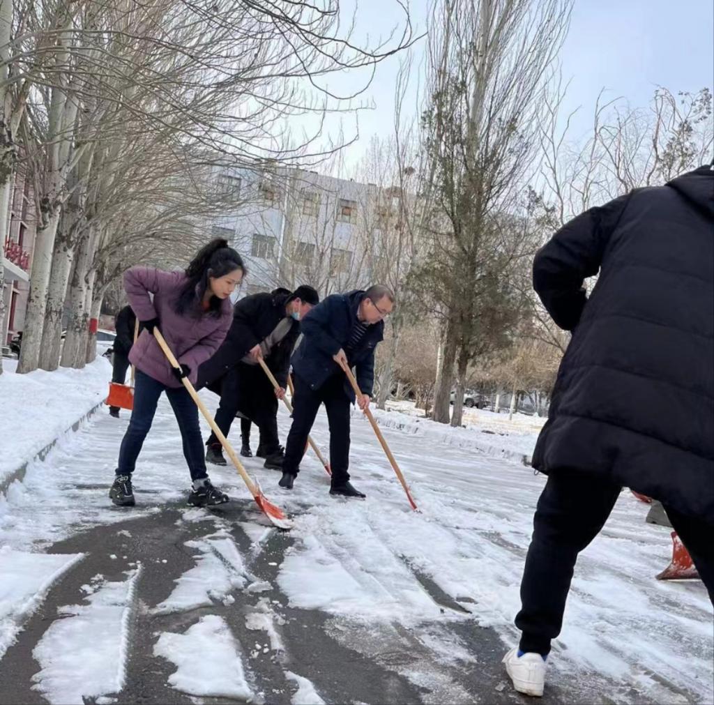 在大家的共同努力下,东校区主干道上的积雪均已扫除完毕,为师生们安全出行、员工返校提供了安全保障,大家用劳动和奉献谱写了校园最美丽的风景。