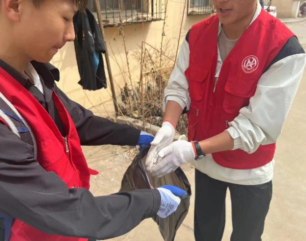 为了营造美丽、文明、和谐的社会环境,同学们带上卫生工具、垃圾袋以及手套、口罩深入社区,进行了堆积物清理和沉重废弃物搬离等环境美化工作,同时也清理了很多枯枝落叶和杂草,尽可能地减少火灾隐患。