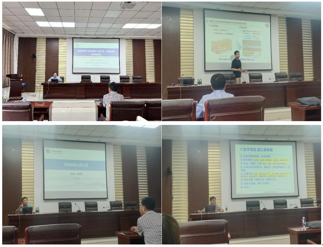 北京科技大学土木与资源工程公司经理苗胜军教授作题为《循环荷载下岩石疲劳力学行为、失稳前兆及寿命预测》的报告,分享了循环荷载下岩石疲劳力学的行为特征,并探讨了疲劳变形破坏前兆特征及预测方法;中国矿业大学(北京)资源科学与工程系系主任李杨教授以《煤层群/破坏区/厚煤层开采与岩层控制》为题分享了厚煤层开采与岩层控制的研究和最新进展;中国地质大学(武汉)罗学东教授就《项目申报心得分享》深入浅出地剖析了项目申报的心得体会;辽宁工程技术大学二级教授王来贵以《国家自然科学基金项目选题》为题,分享了国家自然科学基金项目如何选题的宝贵经验。