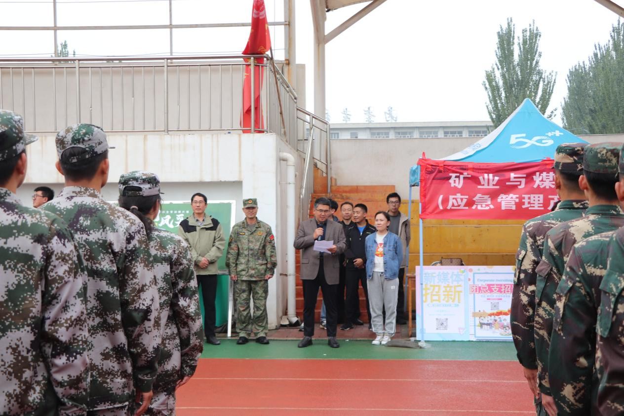 段书记在致辞中向同学们发出期许,希望同学们在接下来的军训中,继续保持高昂的斗志,发扬不怕苦、不怕累的精神,以优异的成绩完成军训任务,表现出矿煤学子的精气神。