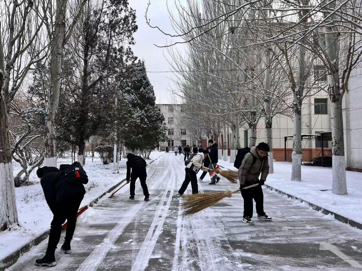 在扫雪现场,同学们不畏严寒,身穿统一的志愿者服装,手持扫帚、铁锹等工具,分工协作,干得热火朝天。有的负责清扫道路积雪,有的负责铲除路面积冰,还有的负责将积雪堆积到指定位置。经过大家的不懈努力,校园内的主要道路很快变得干净整洁,为师生的出行提供了安全保障。