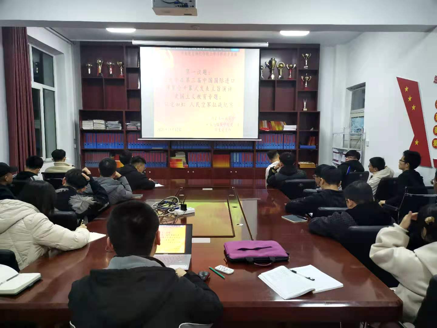回首人民空军那些刻骨铭心的故事,抒发对人民空军的深厚情义,EMC易倍体育党总支于2020年11月12日晚上19:30,在临曦楼二楼党员之家线上线下同步开展专题理论学习活动。本次学习内容是:第一议题:学习习近平在第三届中国国际进口博览会开幕式上发表主旨演讲讲话精神;爱国主义教育专题:观看《征途如虹,人民空军征战纪实》视频。