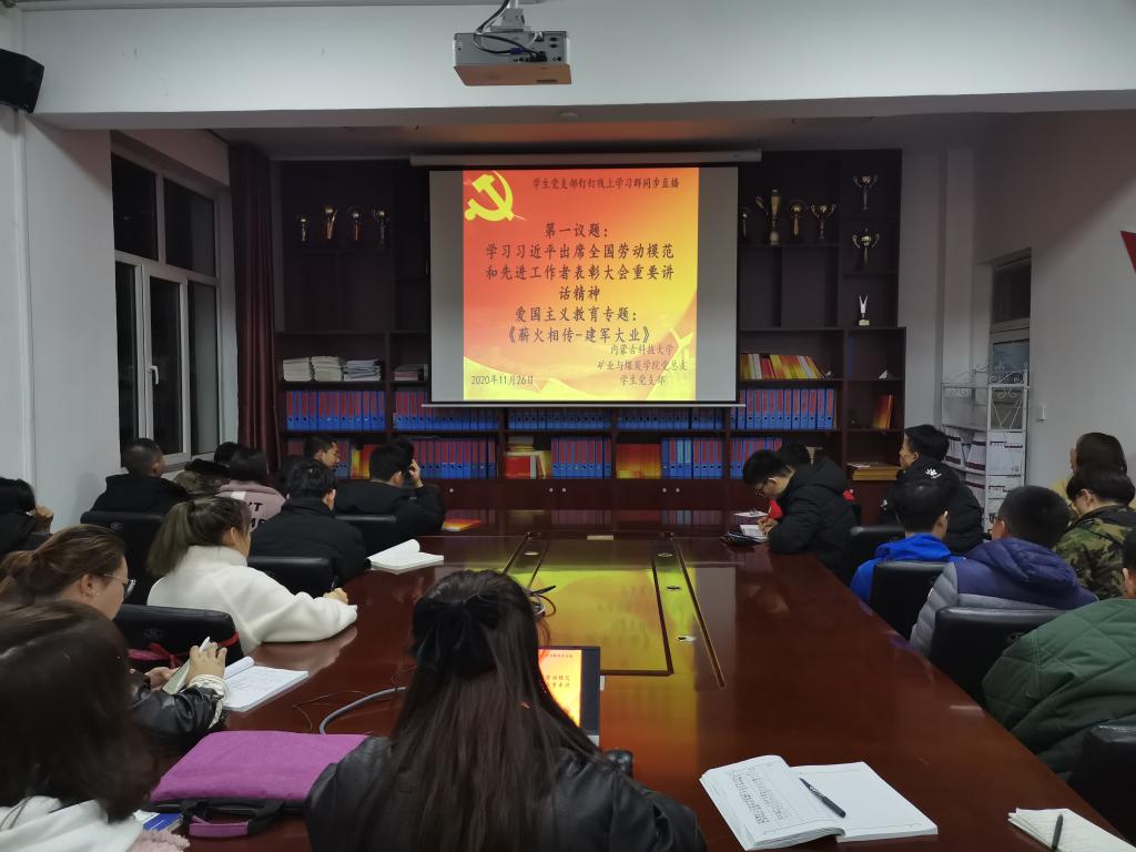 为大力弘扬劳模精神,激励和带动全体员工,EMC易倍体育党总支于2020年11月26日晚上19:30,在临曦楼二楼党员之家线上线下同步开展专题理论学习活动。本次学习内容是:第一议题:学习习近平出席全国劳动模范和先进工作者表彰大会重要讲话精神;爱国主义教育专题:观看《薪火相传-建军大业》视频。
