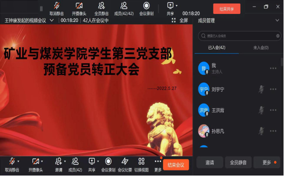 2022年5月27日下午16:20,EMC易倍体育员工第三党支部于钉钉平台线上开展预备党员转正大会。本次会议由支部书记闫妍同志主持,支部全体党员参加。
