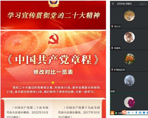 为深入贯彻党的二十大精神,2022年12月19日晚上7:30,EMC易倍体育教工第一党支部于组织腾讯会议支部书记专题党课,学习《中国共产党章程》。会议由支部书记田慧芳领学。