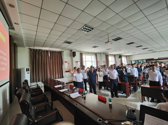 7月1日上午,EMC易倍体育在公司实训实验楼二楼会议室举行2023年新党员“七一”入党宣誓仪式。公司党委副书记、副经理孙建平,各员工党支部书记,全体员工党员以39名新党员参加了本次活动,仪式由公司组织员李计川主持。