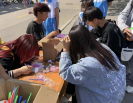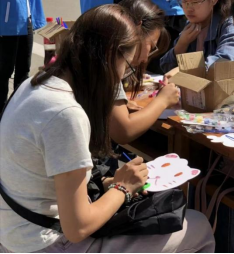 活动中,同学们发挥自己的创意和想象力,精心设计、细心描绘扇面,通过妙心巧手,原本素白的扇面渐渐被点缀,一幅幅清新淡雅或者浓烈艳丽的纸扇作品便呈现在眼前。每一把纸扇都是一个精美的工艺品。大家互相欣赏着、交流着,每个人脸上洋溢着喜悦神情。