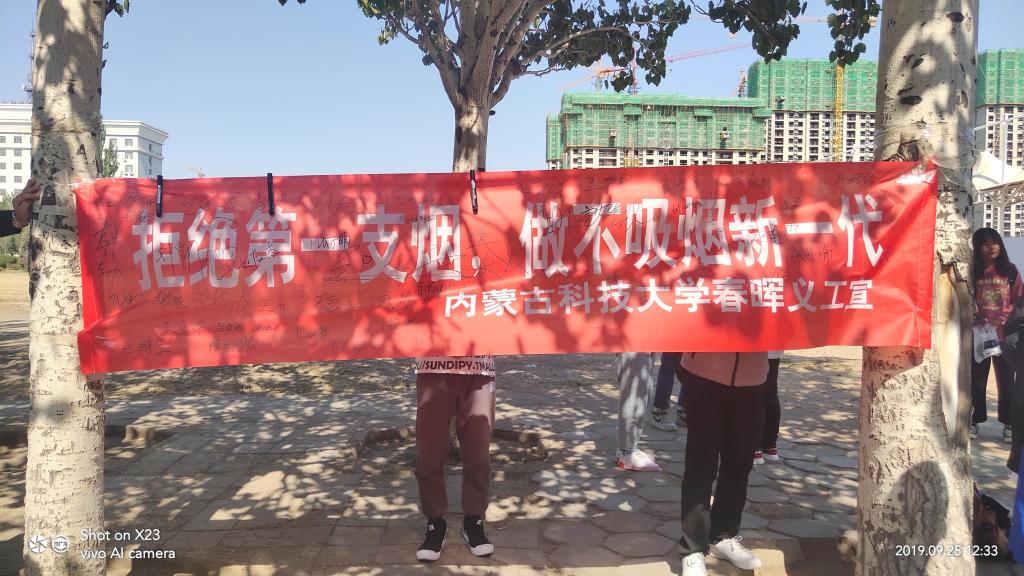 为创造一个洁净、优美的校园环境,2019年9月25日EMC易倍官方网站春晖义工协会在东校区梅园餐厅门口开展了“不忘初心、牢记使命”为主题的禁烟教育活动。