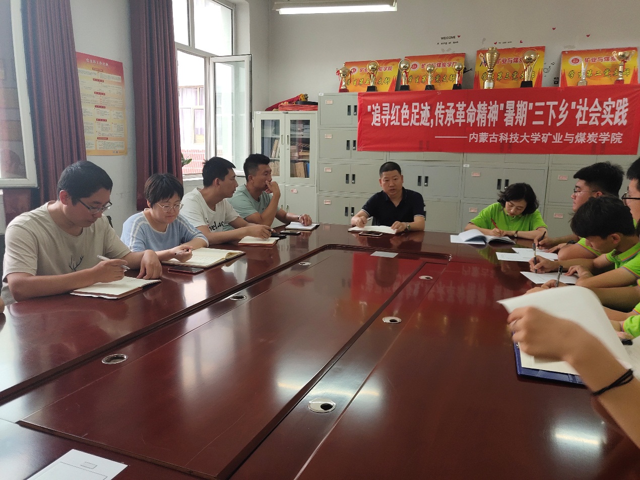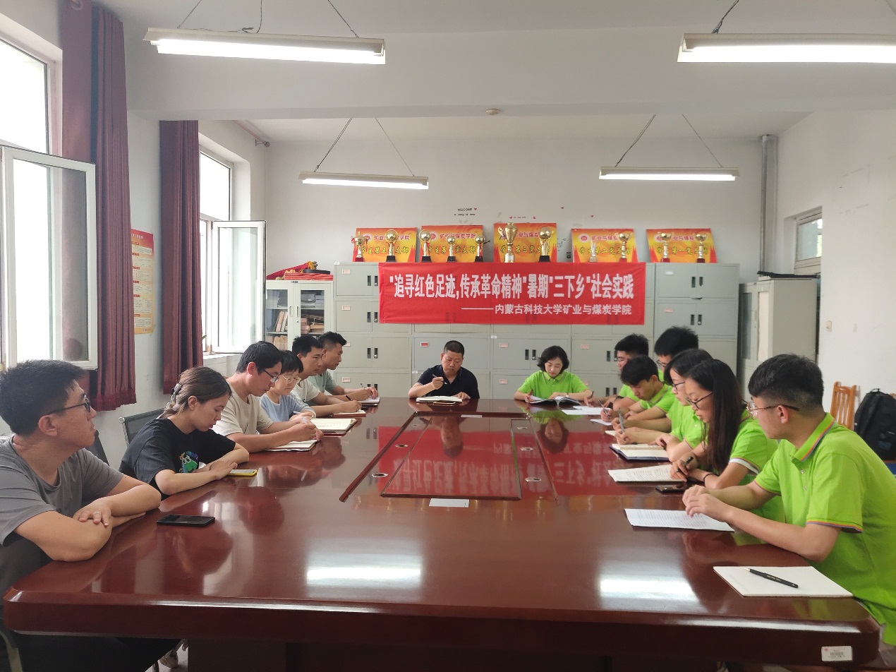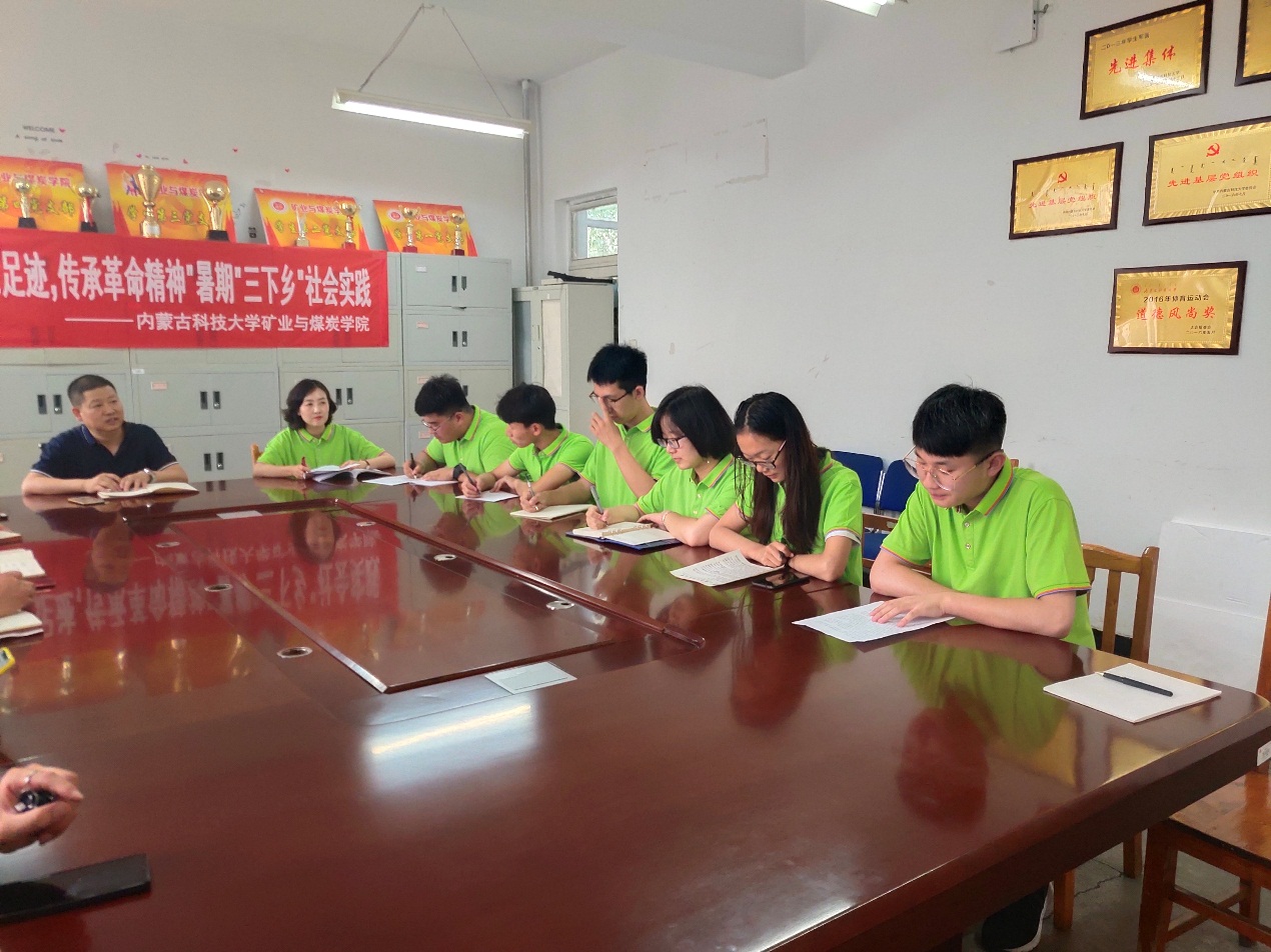 会议开始,首先由团队队长赵辰杰、贫困员工代表王芳分别发言,表达了圆满完成实践任务的决心。接着杜书记介绍了三下乡活动的基本情况,并且在学习延安精神和走进贫困家庭两方面做了着重强调。本次活动以“青春心向党,建功新时代”为主题,让参与者通过历史成就观察、教育关爱服务等实践方式受教育,长才干。杜书记对我们三下乡队伍寄予厚望,同时也强调了活动的安全和纪律问题。