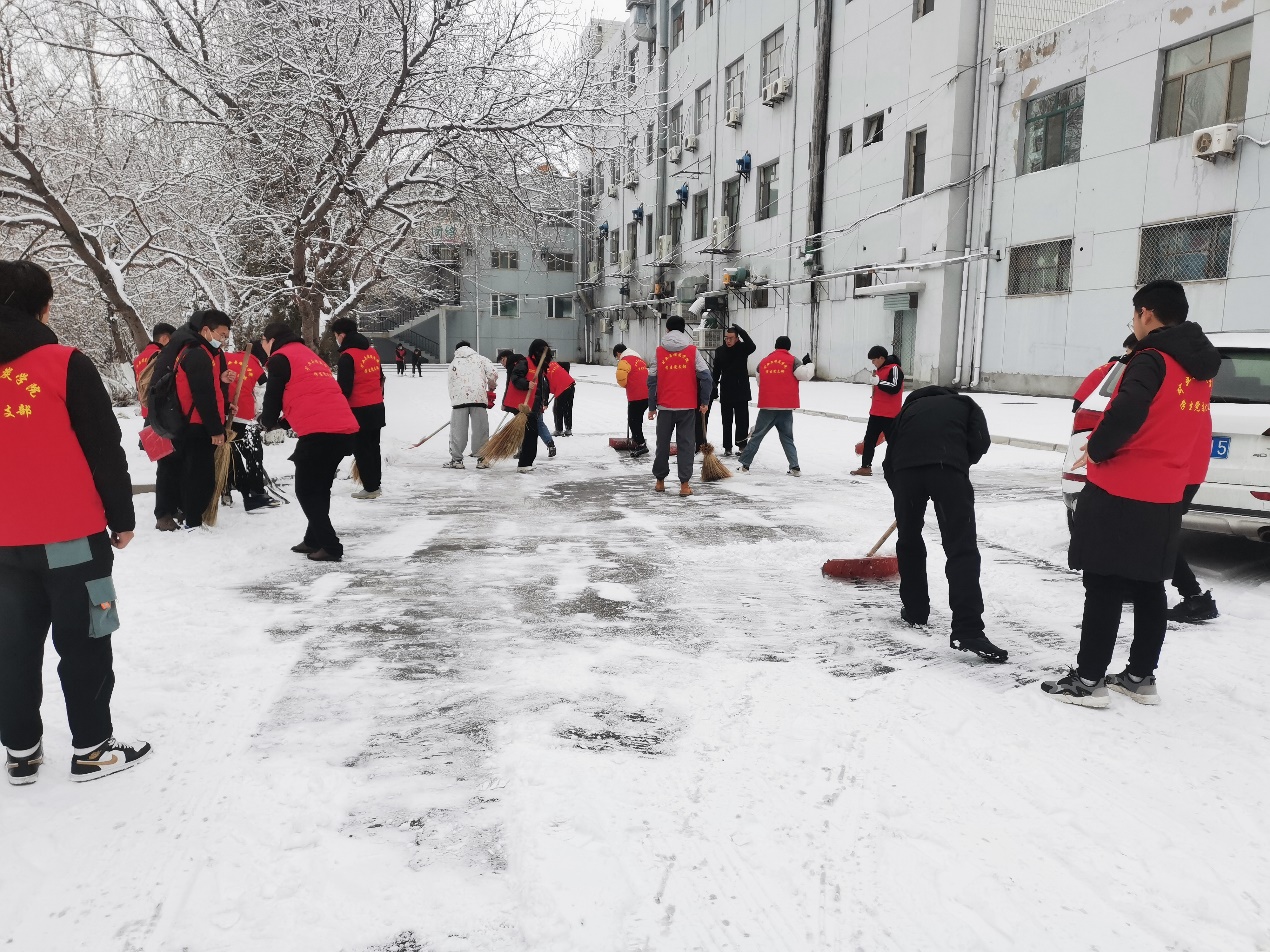 12月8日,EMC易倍体育组织教师、员工党员、员工干部开展清扫冰雪志愿服务活动,齐心协力清除路面积雪,确保师生出行方便、安全。