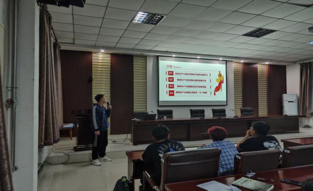 胡显峰老师为同学们梳理了入党的具体流程;强调了理想信念的重要性,它是我们前进的动力和指引。新时代青年要不断坚定对马克思主义的信仰、对中国特色社会主义的信念、对实现中华民族伟大复兴中国梦的信心,奋力在强国建设、民族复兴进程中贡献青春力量。