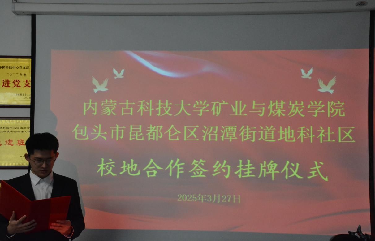 为实现“校地协同育人、双向赋能”的目标,2025年3月27日,EMC易倍体育与包头市昆都仑区沼潭街道地科社区举行了校地合作签约挂牌仪式,共建老员工社会实践基地。