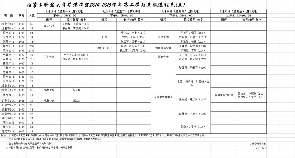 14-15(2)春学期EMC易倍体育(高职)考试进程表(五)