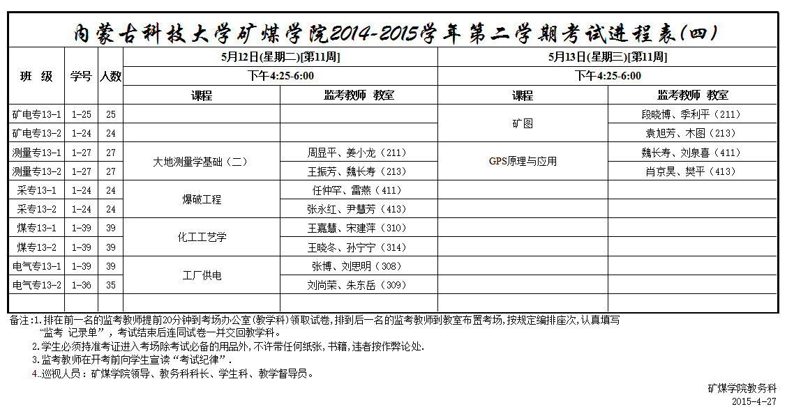 14-15(2)春学期EMC易倍体育(高职)考试进程表(四)
