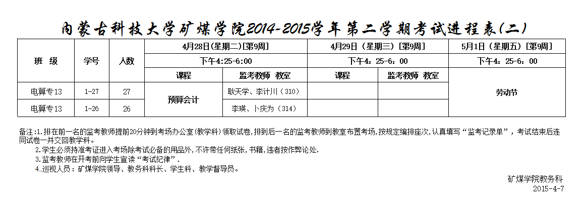 EMC易倍体育(高职)14-15(2)春学期考试进程表(二)